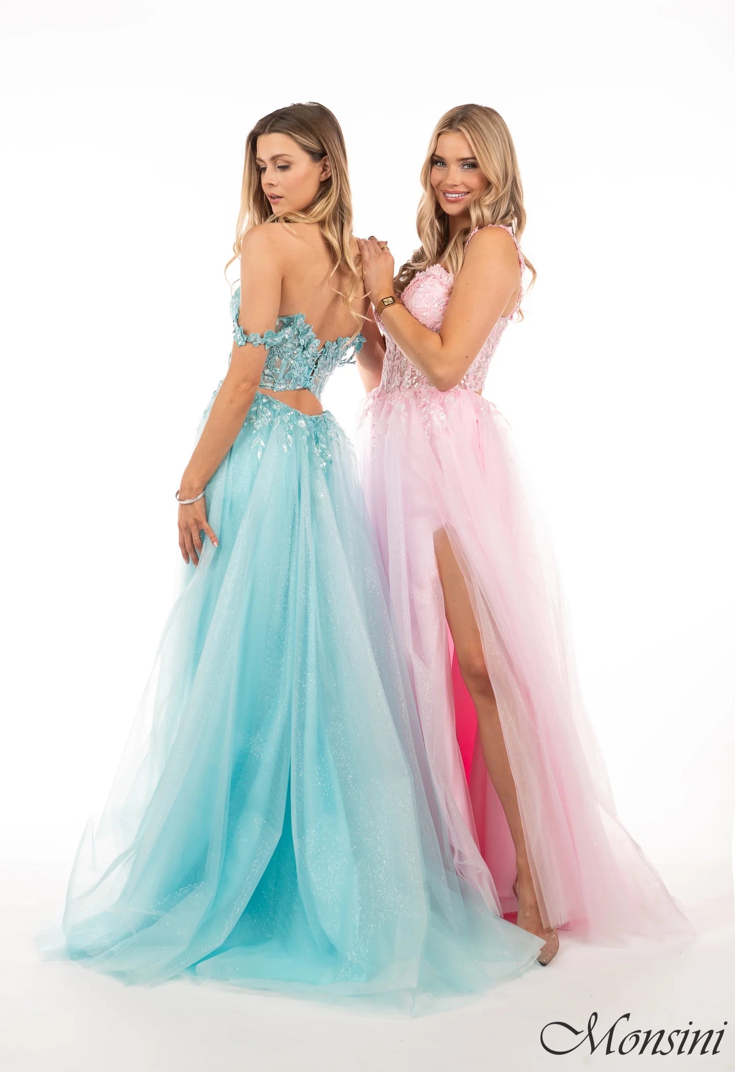 Cette robe Monsini charme par son allure féerique et ses détails délicatement travaillés. Le corsage ajusté, orné d’appliqués floraux et de broderies scintillantes, crée un effet raffiné tout en mettant la silhouette en valeur.