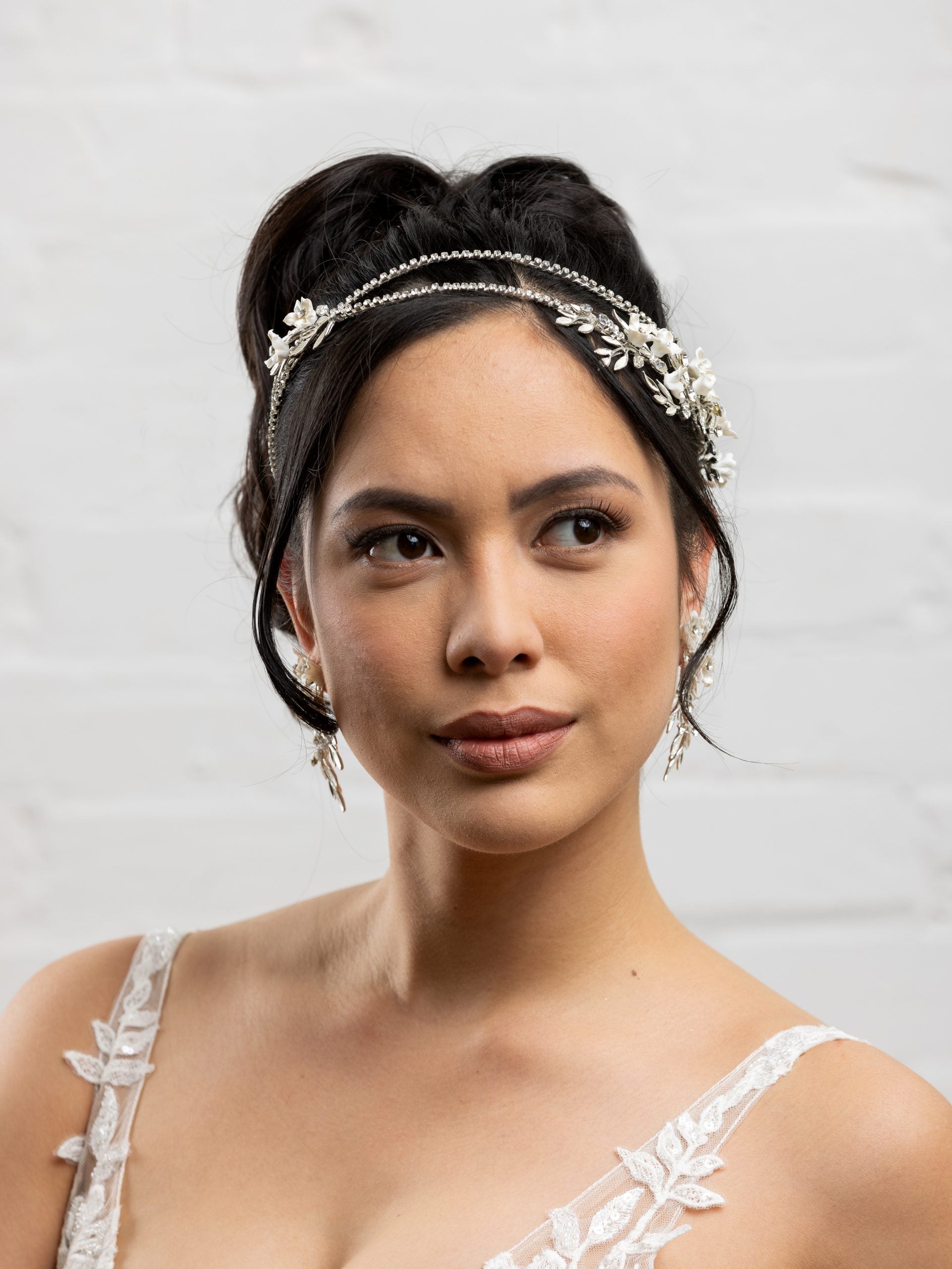 Ajoutez un éclat de sophistication à votre tenue de mariée avec la tiare double avec fleurs. Cette parure raffinée illuminera vos cheveux et vous rendra encore plus élégante le jour de votre mariage. Soyez la mariée la plus belle et la plus exclusive avec cette pièce de luxe.
