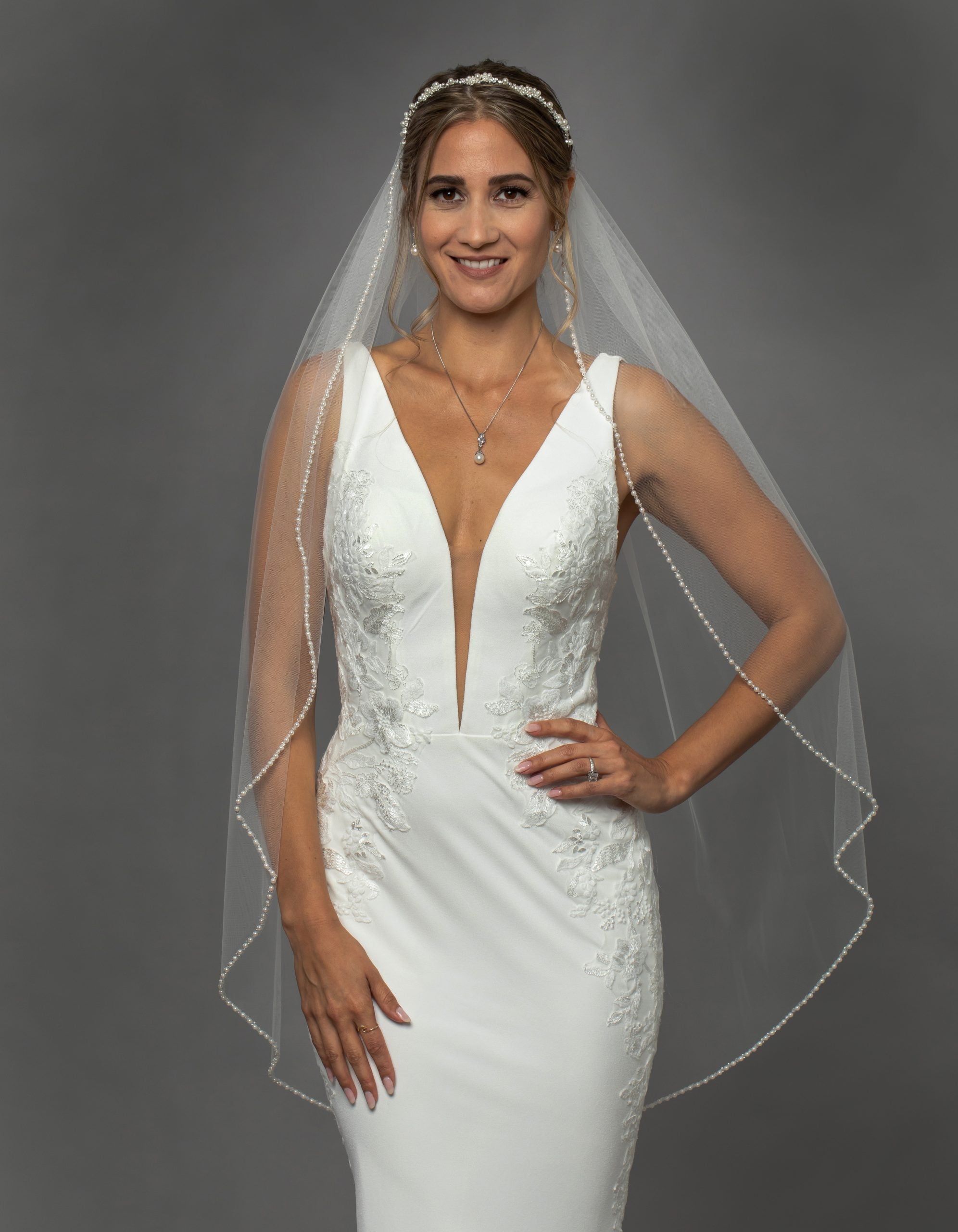 Voile contour perlé